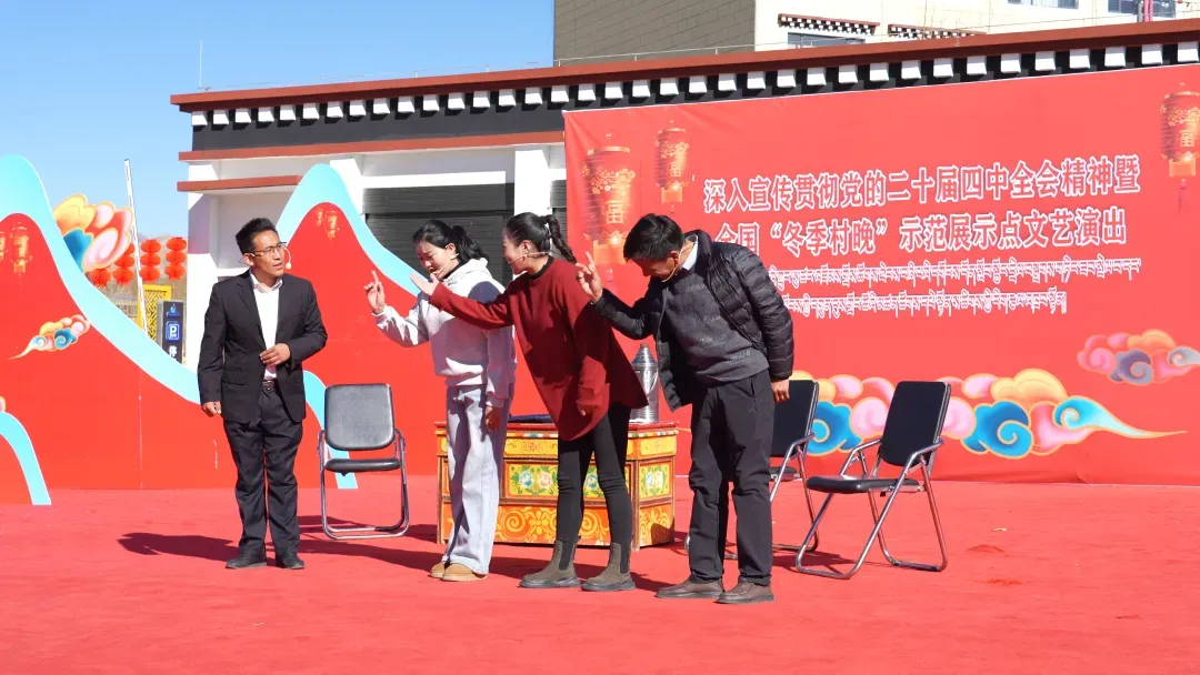 12月15日,由日喀则市文化和旅游局、谢通门县委宣传部主办,日喀则市群众艺术馆、谢通门县文化和旅游局承办的深入宣传贯彻党的二十届四中全会精神暨全国冬季“村晚”示范展示点文艺演出,在谢通门县卡嘎镇卡嘎村文化广场拉开帷幕。