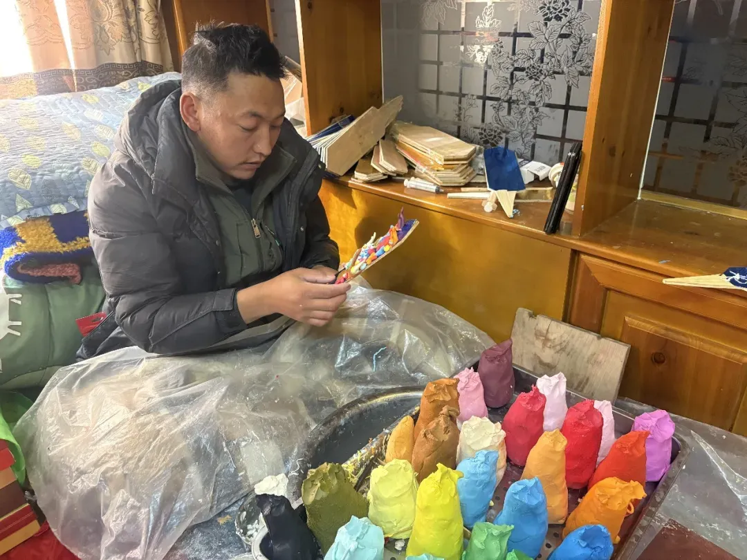这么多年来,罗布前后培养了400多名学徒,每年年前,他都会组织为期一个月的集中培训,之后带着大家到拉萨共同参与酥油花创作。不少徒弟学成后技艺精湛,靠着这门手艺站稳了脚跟。如今,酥油花制作不仅成了村集体经济发展的重要支柱,更成了改善村民生活的主要途径。村里不少家庭一家五六口人都投身酥油花制作,人人都是学徒。