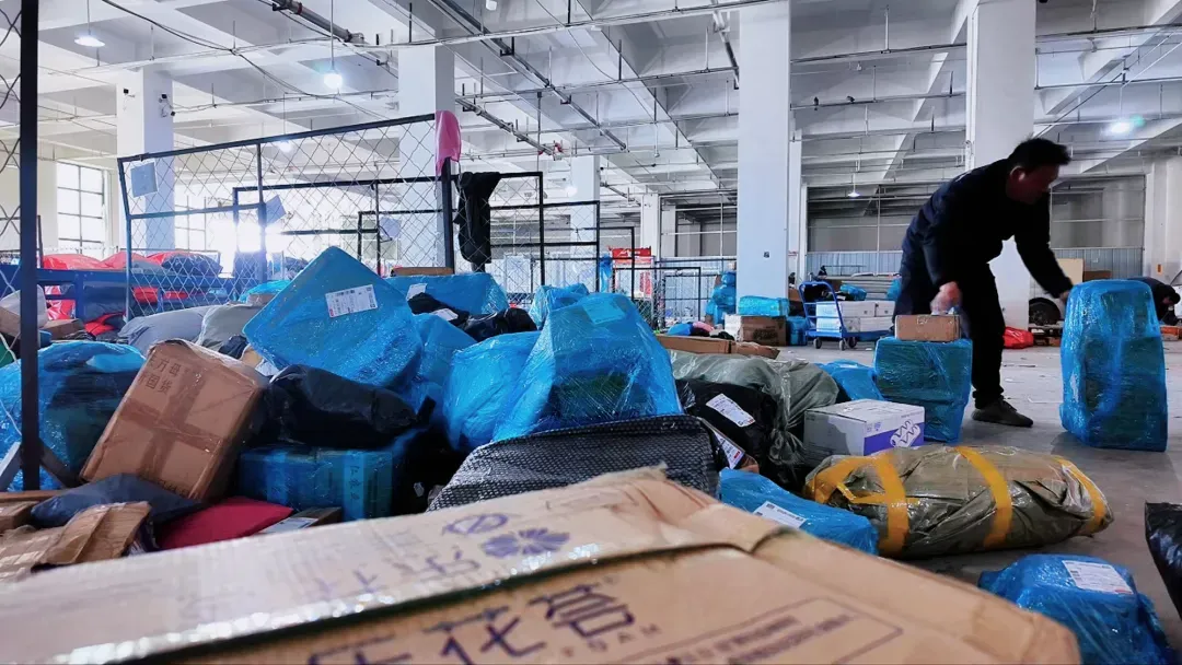 采访不到一分钟,他来不及多说,转身快步走回那堆待分拣的包裹前,弯腰接着一件件分拣——下一车快递,还等着他送。