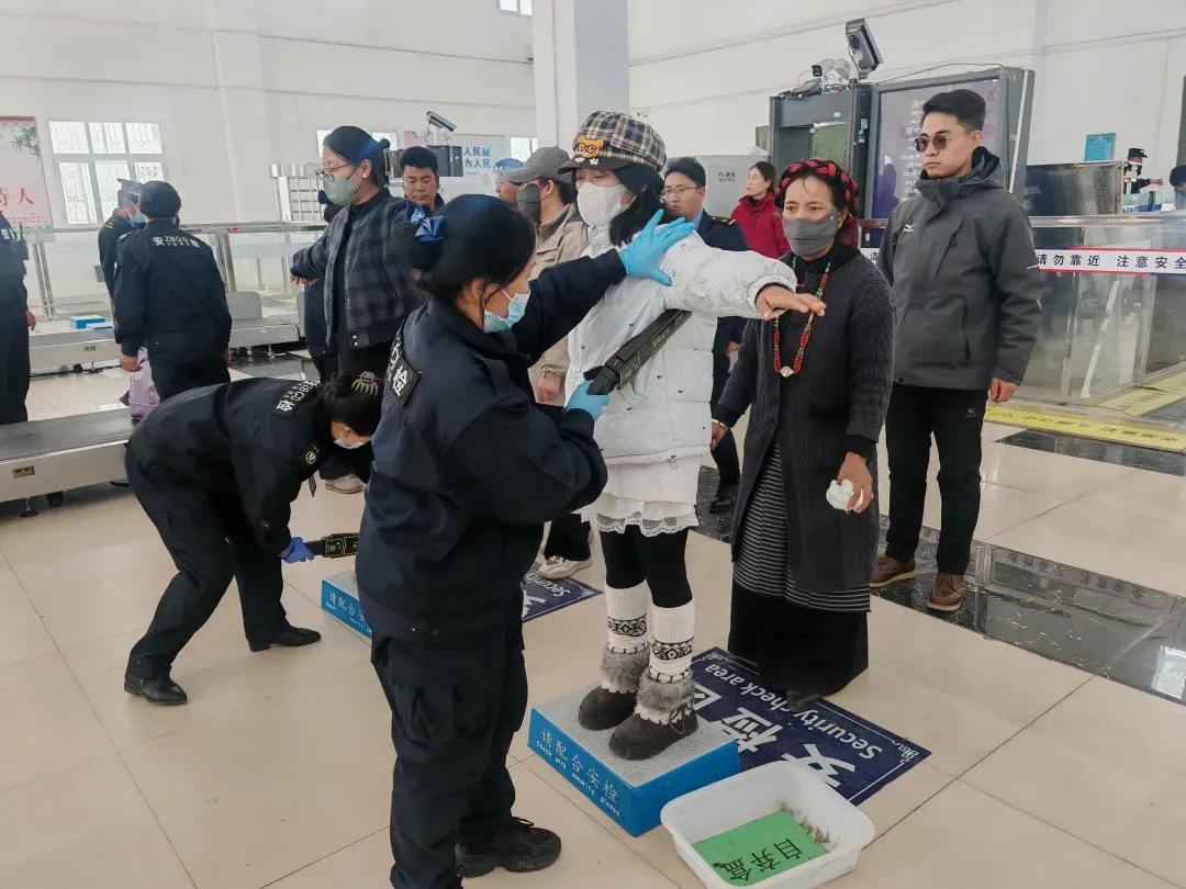 车站安检通道处,工作人员耐心引导旅客有序排队、放置行李,对每一件物品细致检查。安检员卓玛脸上带着温暖的笑容说道“我们会守好安全关,做好服务,让大家出行顺畅、安心。”