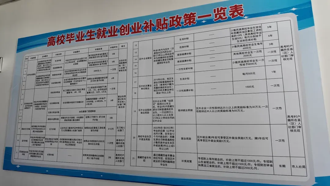 就业是民生之本,创业是发展之基。近年来,日喀则市持续健全就业创业服务体系,精准高效落实高校毕业生就业创业扶持政策,用足用好各项补贴资金,以实打实的政策“组合拳”为高校毕业生保驾护航。