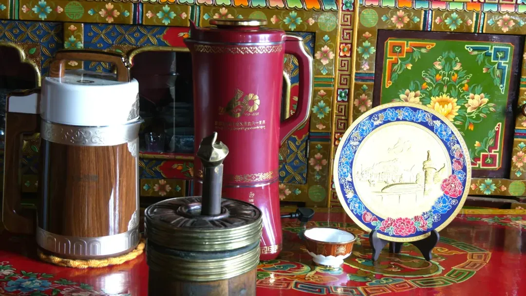 更让一家人铭记在心的,是党中央送来的关怀与礼物:中央代表团赠送的精致藏式茶具、酥油茶机、太阳能灯……每一件都承载着党和国家的深情厚谊。普布顿珠平日里喜欢在家缝制衣物,日子好了,他特意为自己添置了一台电动缝纫机。