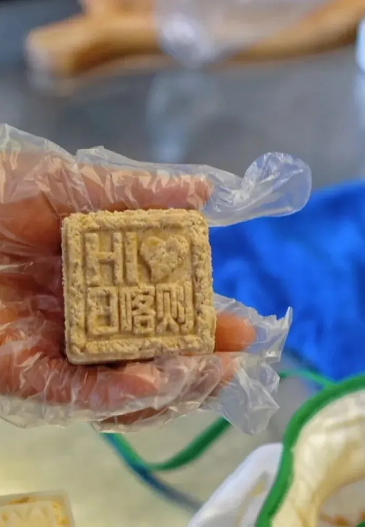 印着“日喀则”字样的精致糌粑团,
