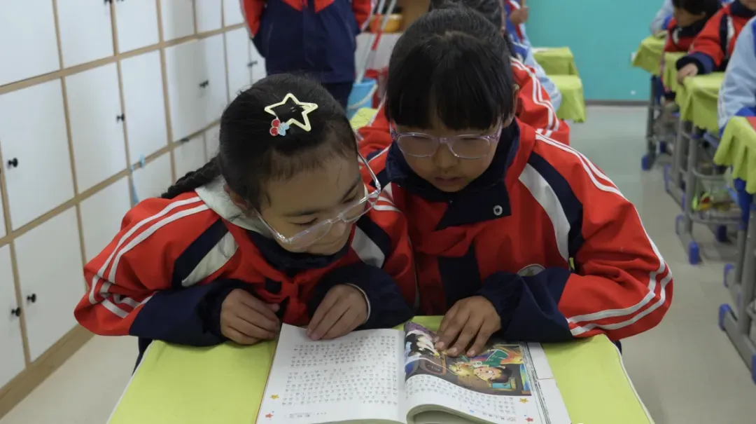 下课铃声响起,教室里的热闹却没散去。上台分享的孩子们凑在一起,头挨着头,指尖划过书页,把课堂上没说尽的感受,细细诉说给身边小伙伴。