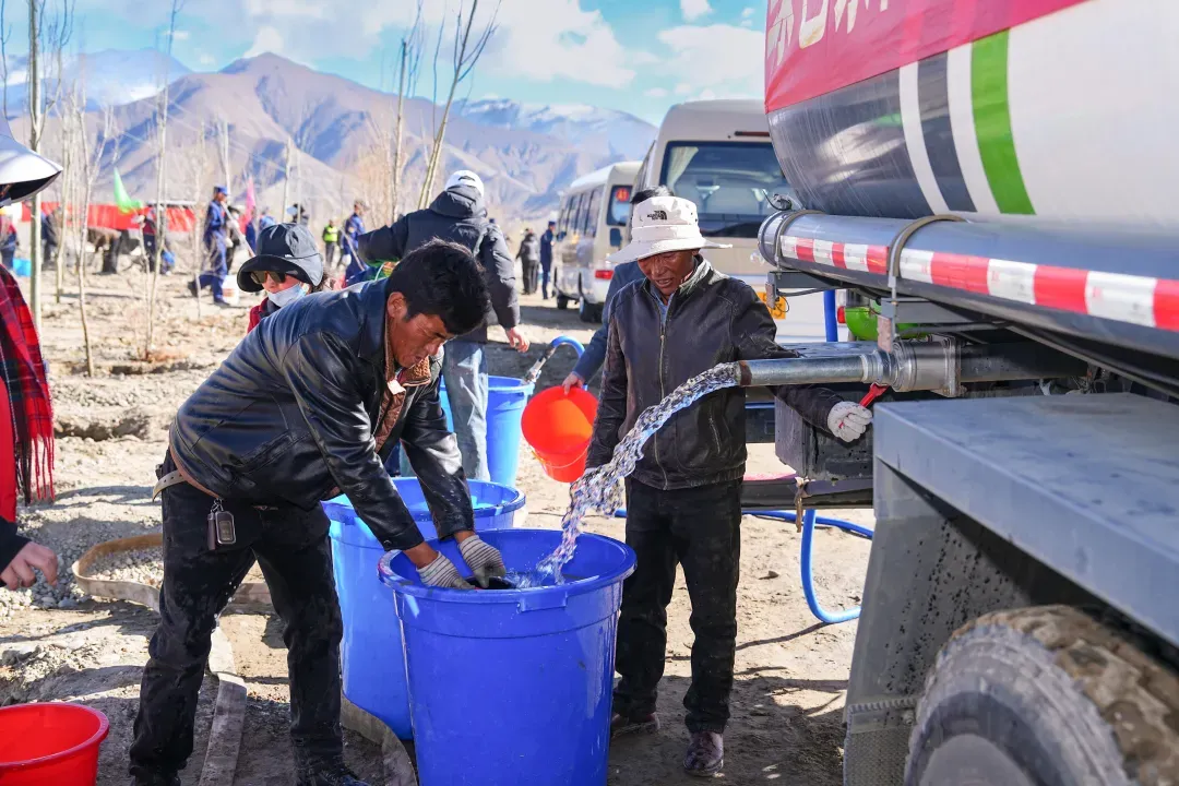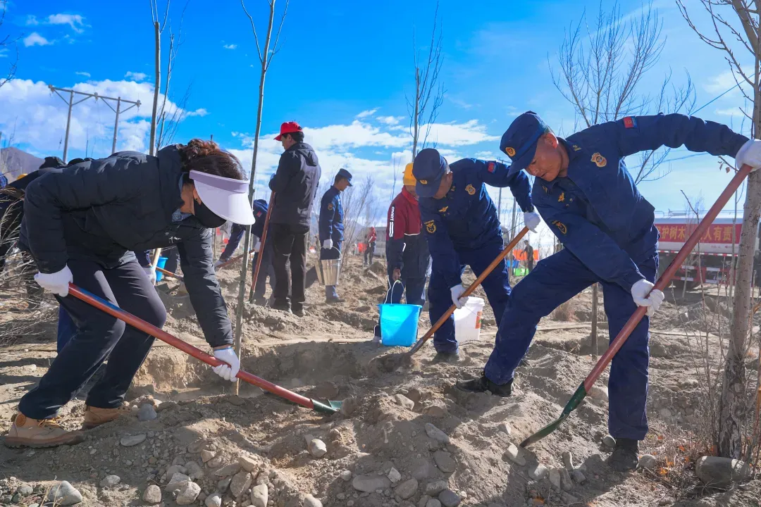 春上高原,绿意初绽。市领导来到桑珠孜区东嘎大桥南侧植树点,与干部群众一起参加义务植树。活动现场,春风拂面、阳光和煦,处处一派繁忙景象。挥锹铲土、培土围堰、提水浇灌……大家三五成组、分工协作,悉心栽种下一株株树苗。铁锹与泥土碰撞的声响、水桶浇灌的潺潺水声,与欢声笑语交织在一起,奏响春日植绿的动人乐章。