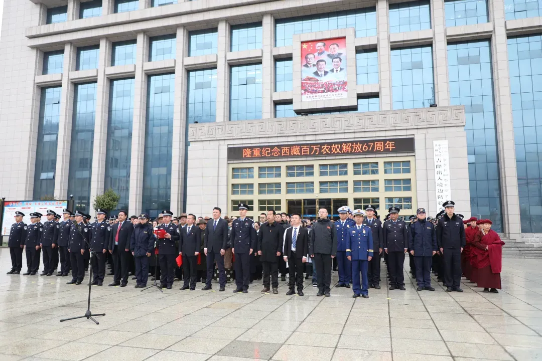 3月28日清晨,一场春雪悄然降临,为日喀则大地披上了圣洁的银装。这一天,是西藏百万农奴解放67周年纪念日。在这片被春雪润泽的土地上,全市各族各界干部群众代表身着节日盛装,汇聚到4号公园广场,举行庄严的升国旗仪式,共同纪念那个从黑暗走向光明的伟大日子。