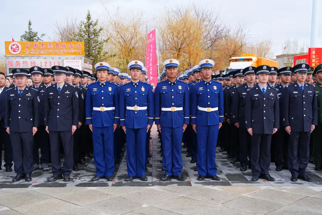上午10时,广场上红旗猎猎,远处雪山连绵,构成了一幅壮美的高原画卷。伴随着一声清脆的口令,英姿飒爽的国旗护卫队迈着铿锵有力的步伐,护卫国旗走向升旗台。当雄壮的《义勇军进行曲》响彻天际,升旗手振臂展旗,鲜艳的五星红旗冉冉升起,在远处雪山的映衬下格外夺目。